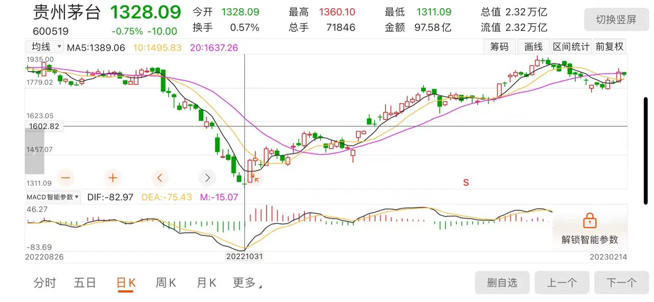 从个股情况来看,自去年10月以来,贵州茅台最低点为2022年10月31日,股价达1328.09元/股,经过四个月快速拉升,时至今日贵州茅台股价提升38.83%。