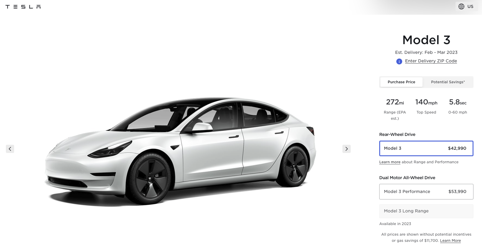 2月14日,特斯拉美国官网显示,Model 3标准版售价下调500美元至42990美元,高性能版Model 3售价则保持不变;Model Y高性能版售价再度上调500美元至58990美元,长续航版本售价则无变化。