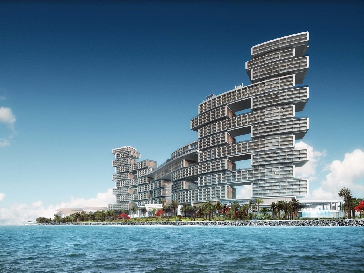 2月10日,迪拜皇家亚特兰蒂斯酒店(Atlantis The Royal)迎来开业,酒店由世界知名建筑公司KPF担任首席建筑设计公司,以水波为元素和理念,酒店外形被打造成了堆叠的箱子,中间镂空,仅用一座95米长的天桥连接,堪称全新的空中皇家花园。