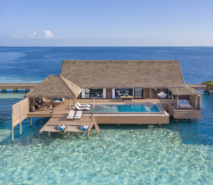 Soneva Jani位于努努环礁岛,是马尔达夫最大,也是世界上密度最低的度假村之一,只有51座水上别墅和3座岛屿别墅。水上别墅有一至四间卧室的房型可以选择,每一座都有私人泳池和直接滑入泻湖的超长滑梯,主卧室上方屋顶可以伸缩,在房间内即可观赏一览无余的星空。