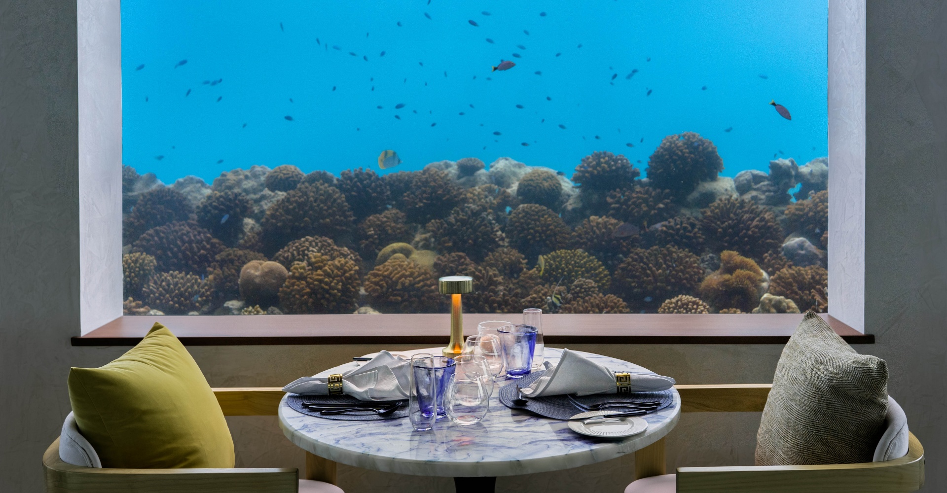“爱之岛”拥有马尔代夫最大的水下餐厅ONLY BLU,位于海平面以下6.8米,在异国情调的蓝色色调和丰富的海洋生物的包围下,营造与自然亲密联系的海底用餐体验。此外,还有专为情侣设计的水疗中心ELENA,拥有四间双人治疗室,每一间都掩映在郁郁葱葱的花园中,提供放松而亲密的水疗体验。