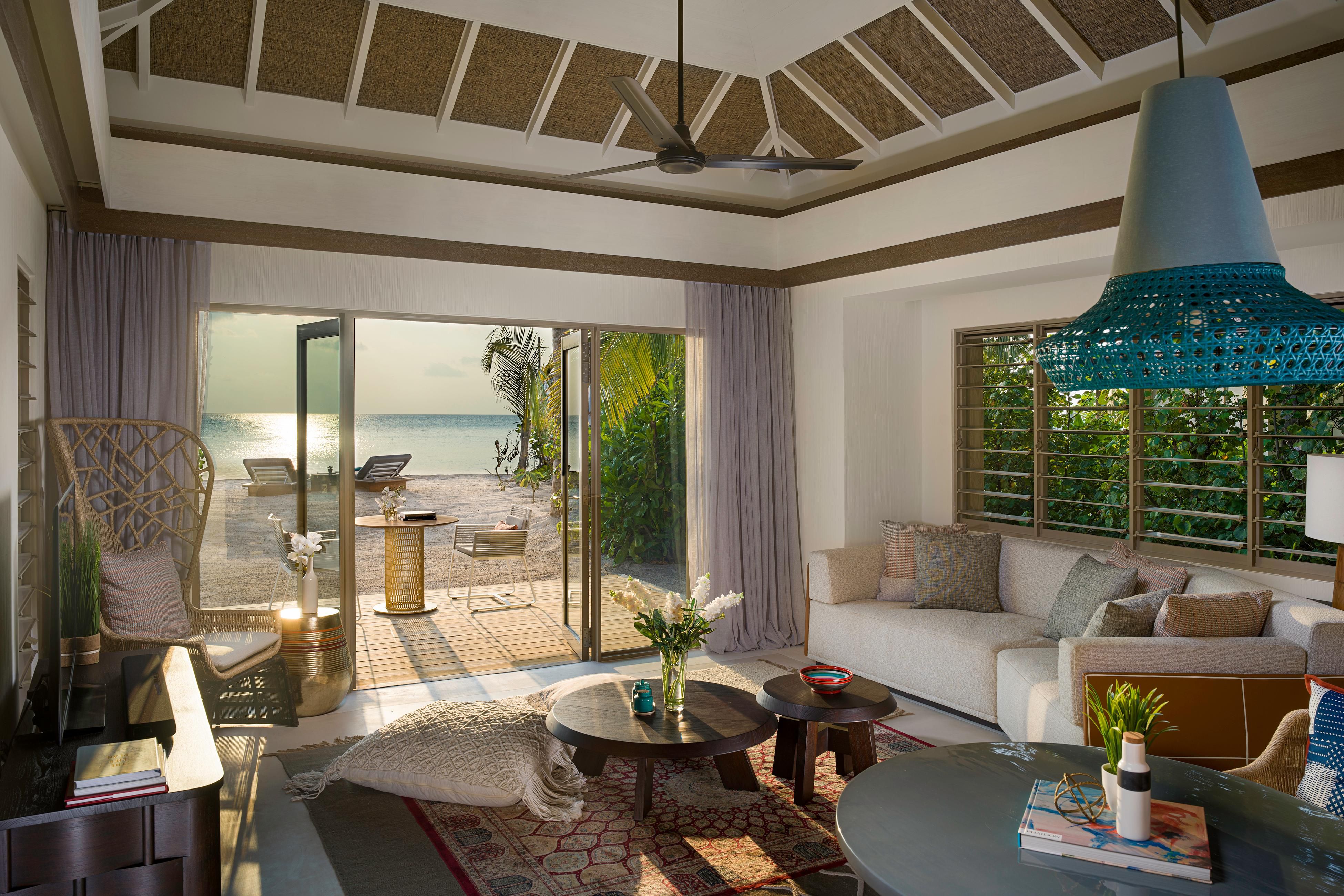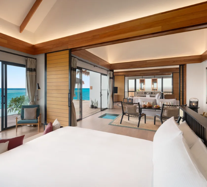 度假村一共68间别墅,包括沙滩别墅和水上别墅,一卧到四卧各种房型配置齐全,所有别墅均带有私人泳池。岛上有三个特色餐厅,Plantae 提供素食和纯素美食,Su 提供从海洋到餐桌的 pescatarian 美食,B'Well 提供招牌 JOALI BEING 菜单,包括精选从“菜地到餐桌”系列 。