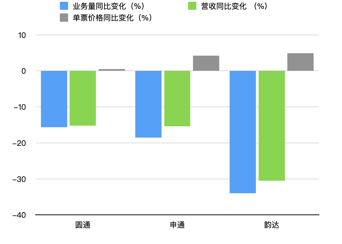 对于1月份的业绩,韵达在公告中表示,受春节假期影响,2023年春节假期在1月中下旬左右,2022年春节假期在1月末至2月中旬,因2023年和2022年存在“春节错期”原因,导致2023年1月的业务量及快递服务业务收入同比有所下降。