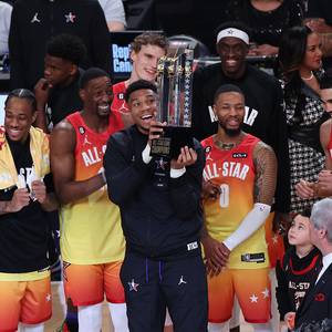最终,字母哥队184-175战胜詹姆斯队。字母哥队的塔图姆砍下全场最高的55分,外加10个篮板和6个助攻,拿下本场比赛的MVP。