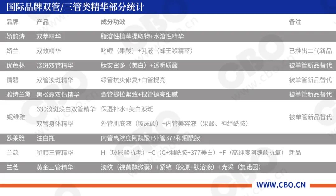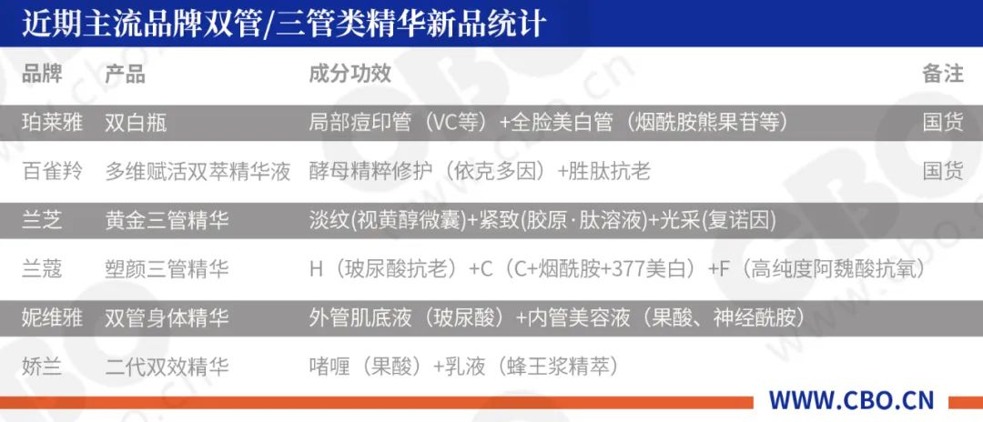 双管齐下就能实现1+1>2的效果吗?就在刚刚过去的一年,一批国内外美妆品牌都推出了主打“双管双效”,甚至“三管三效”的新品精华产品。