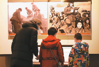小朋友跟随家长在辽宁省抚顺雷锋纪念馆里参观。新华社记者 姚剑锋摄