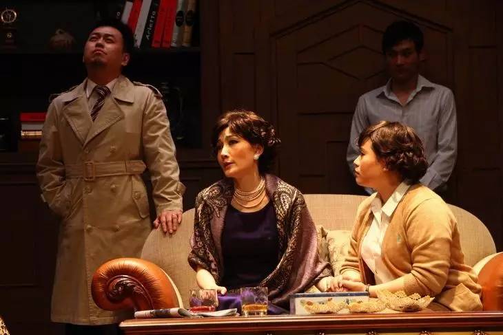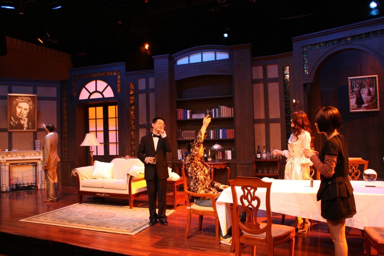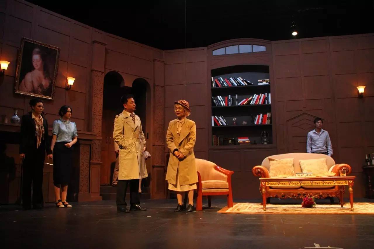 典型英式海岸别墅,其写实风格,让观众有身临其境的感受,能很快进入剧中的规定故事情景中,特别是舞台上的别墅显得暗机重重,令人时时生疑,在营造悬念方面有着独特的魅力。