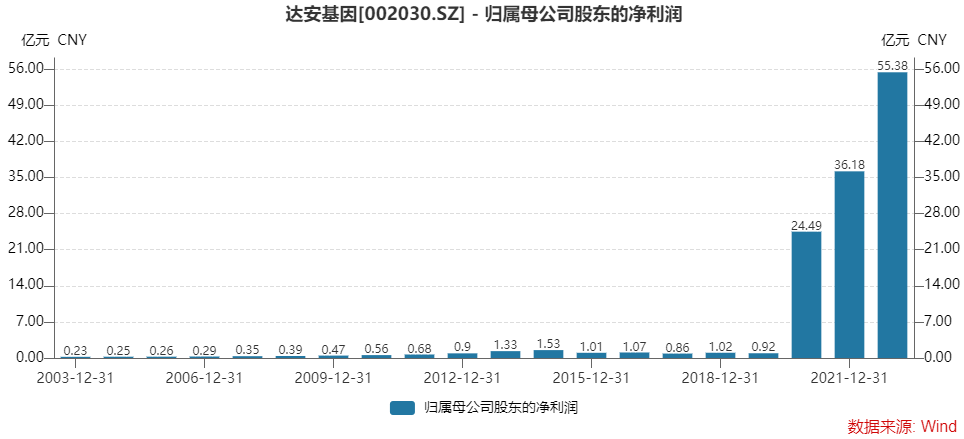 新冠疫情三年,给达安基因带来的变化巨大。达安基因上市至今十九年累计实现净利润127.96亿元,其中近三年的合计盈利高达116.05亿元,占比90%;在其余的十六年里,公司每年盈利在亿元上下,累计实现盈利不到12亿元。