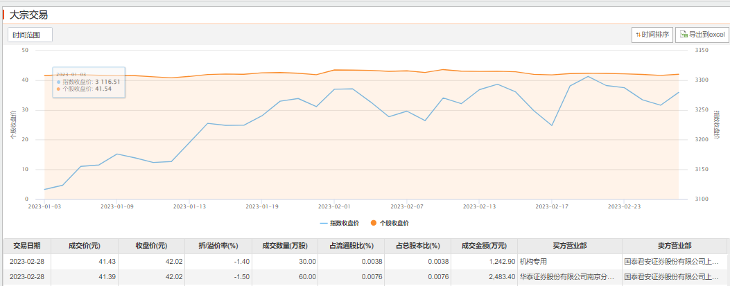 中芯国际2月28日大宗交易成交90万股,成交额3726.3万元,占当日总成交额的6.29%,成交均价41.4元,较市场收盘价42.02元折价1.48%,其中最高成交价41.43元,最低成交价41.39元。