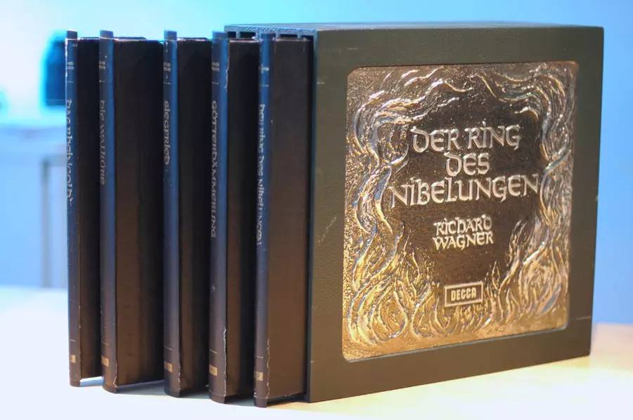 RCA早期一些歌剧唱片,是采用类似公文夹设计,正面上方的掀盖,附有小铜钩,可以和下方的部分扣住。