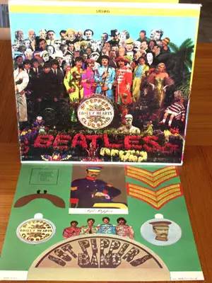 使用这样的封套设计,多半是流行音乐的“图案唱片”,唱片上印有图案,然后在其中夹了一层印有各种图案的纸片,可以从封套看见这种特殊的碟片设计。