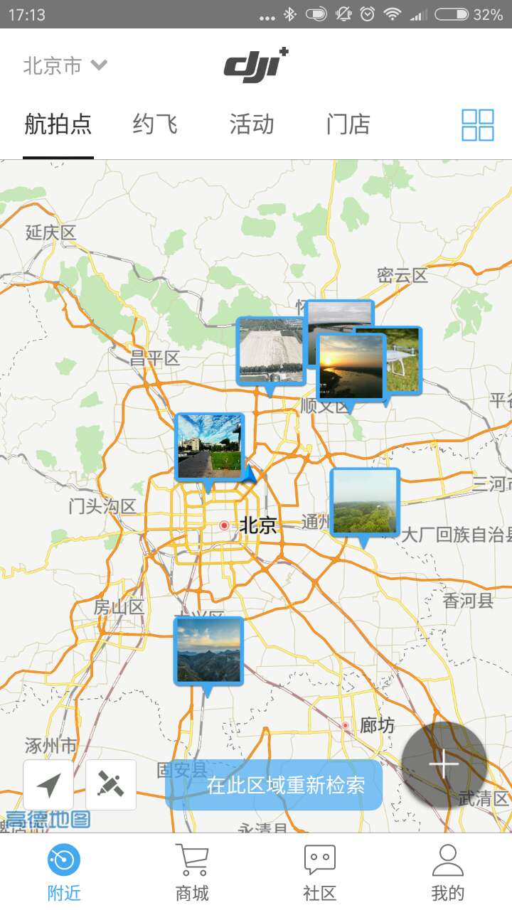 通过一个叫“DJI Discover”的App,我找到了六环外较适合试飞无人机的地方,并选择去到顺义奥林匹克水上公园和城北减河附近试飞。从望京出发,先坐地铁再打滴滴车程正好约1小时左右。