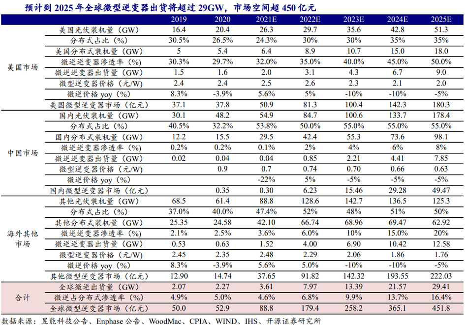 与此同时,微型逆变器的想象空间相对有限。据相关数据统计,目前全球微型逆变器市场需求量在2GW~3GW。根据券商研报分析,2025年全球微型逆变器出货量也仅为29GW,市场空间约450亿元。