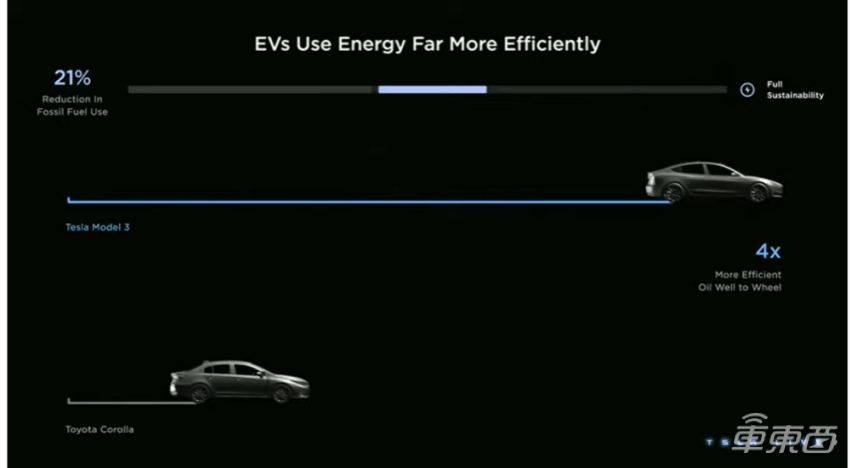 Model 3对能源的利用率是丰田卡罗拉的4倍