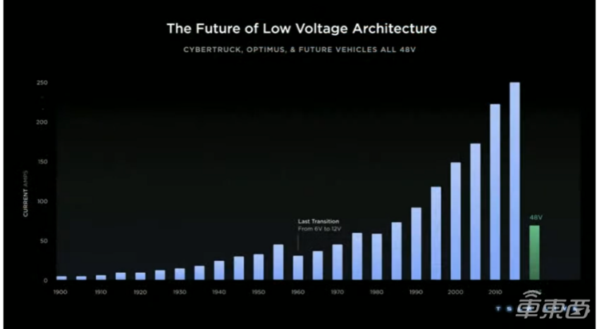 而在下一代的汽车平台上,特斯拉还将会使用永磁电机,可以减少或者避免使用稀土,并且还会使用48V平台,下一代新车和Cybertruck都将会采用。