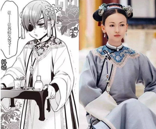 再比如《黑执事》夏尔与《延禧攻略》魏璎珞云肩装撞衫等等。