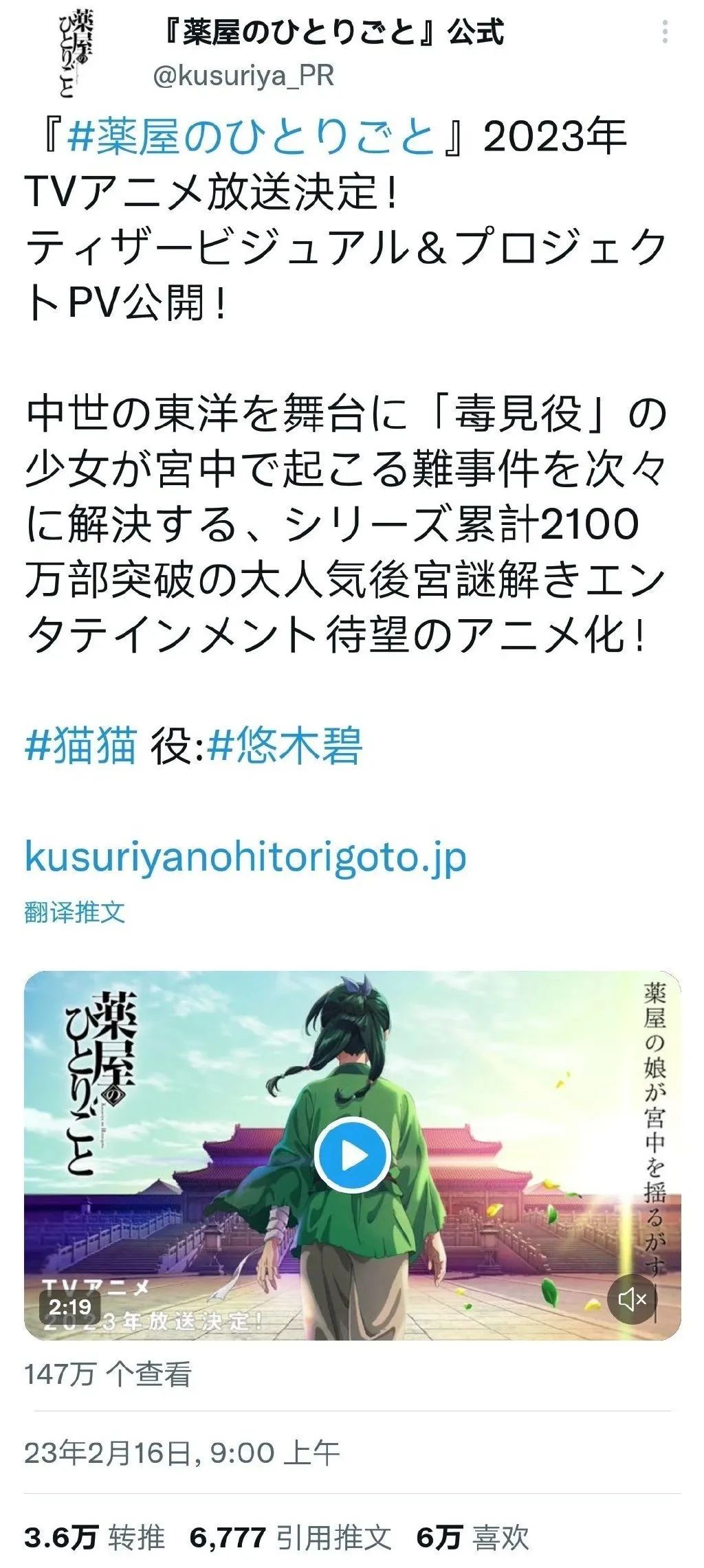 在近几年的女性题材作品中,对中国文化要素的挪用尤其明显,比如去年的《后宫之乌》,以及最近依靠高质量PV引发了动漫爱好者讨论的轻改动画《药屋少女的呢喃》(以下简称《药屋少女》)。特别是后者,PV里古香古色的建筑、古典气质的人物装扮,让原著粉丝欣喜无比。但同样出现在评论区的,还有其他动漫爱好者对该作中国要素一锅乱炖的不满声。