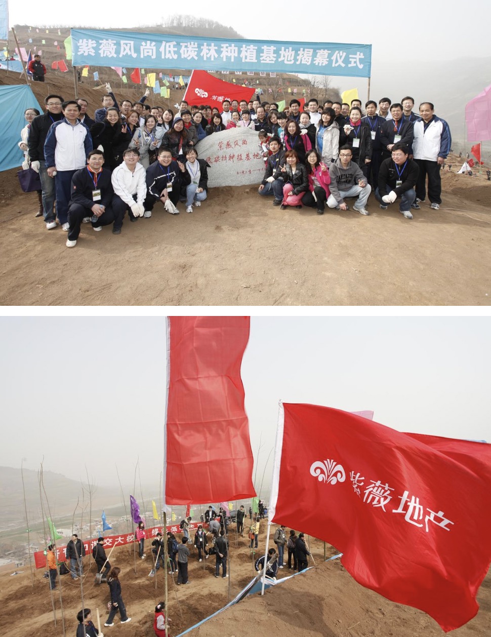 2010年3月13日,紫薇地产风尚低碳林种植基地正式成立,来自社会各界的千名志愿者共同见证了这一难忘时刻。紫薇地产也以此次植树“低碳行动”为起始点,面向社会公众积极倡导低碳理念,与社会各界人士一起行动,让低碳行动持续下去、接力下去,为秦岭北麓种下一片绿色希望。