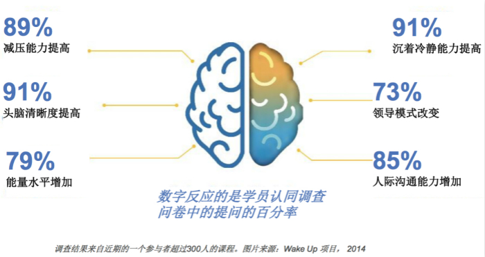 这是怎么做到的?“在硅谷告诉发展的高科技环境中,公司有各种办法帮助员工减压、提供健康福利、提升员工持续健康地完成挑战性工作的能力。Chade-Meng Tan在让正念这个概念被最偏激的怀疑者接受上堪称先驱,他的方法是用科学来解释一切。他用数据来证明正念练习的确能够提高身心健康和工作效率,神经科学为现代公司证实了那些古老传统对任何人都有价值。企业开始发现正念的好处,比如员工敬业度、健康、专注度、沟通技巧、创造力和工作压力缓解。”SIYLI首席执行官Marc Lesser和SIYLI市场营销副总裁Peter Weng在邮件中告诉界面新闻。