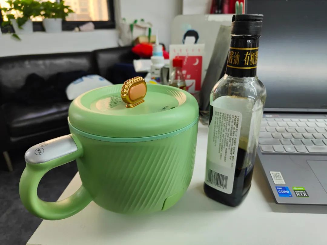 ▲ 在办公室做饭,省钱。同时,使用有机酱油,也不降低生活品质。图 / 受访者提供