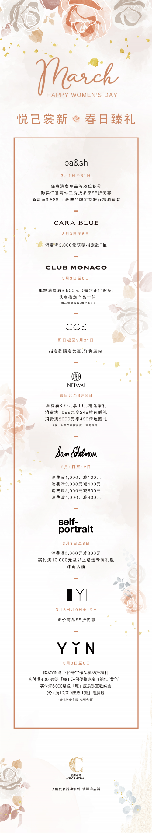 女神新装,每套衣服都值得拥有。东座L3层焕新开业的ba&sh推出2023春夏系列,ba&sh以富有波西米亚精神的佩斯利印花作为夏日序曲,让怀揣着迫切心情与无限畅想的ba&sh女孩,率先开启春夏穿搭。同时3月1日-3月31日还有商场会员专属福利,到店入群可领取限量环保帆布袋,上述活动详情可到店铺咨询。