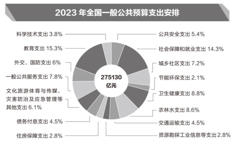 预算报告显示,2023年,全国一般公共预算支出安排27.51万亿元,比上年增长5.6%,增速较上年放缓0.5个百分点。