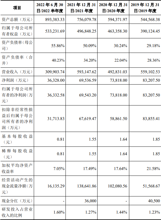 公司主要从事运动鞋、运动服装、运动配饰产品的设计、生产和销售。公司于2019年、2020年、2021年及2022年上半年分别实现营业收入55.91亿元、49.28亿元、59.31亿元及30.99亿元;分别实现归母净利润8.32亿元、7.38亿元、6.95亿元及3.63亿元。