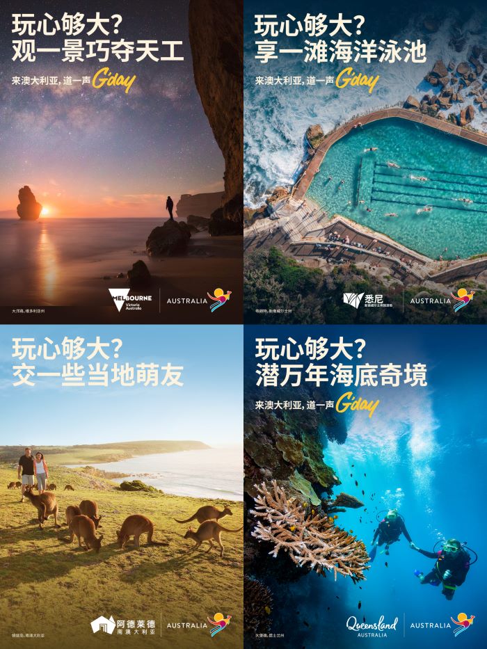 今年3月起,澳大利亚旅游局还在中国市场正式推出“玩心够大,来澳大利亚”(Don’t Go Small, Go Australia)市场营销活动。该活动将通过数字和社交渠道进行推广,重点介绍澳大利亚作为旅游目的地的精华体验,展示澳大利亚本土文化、自然风光、美食美酒和野生动物资源等。