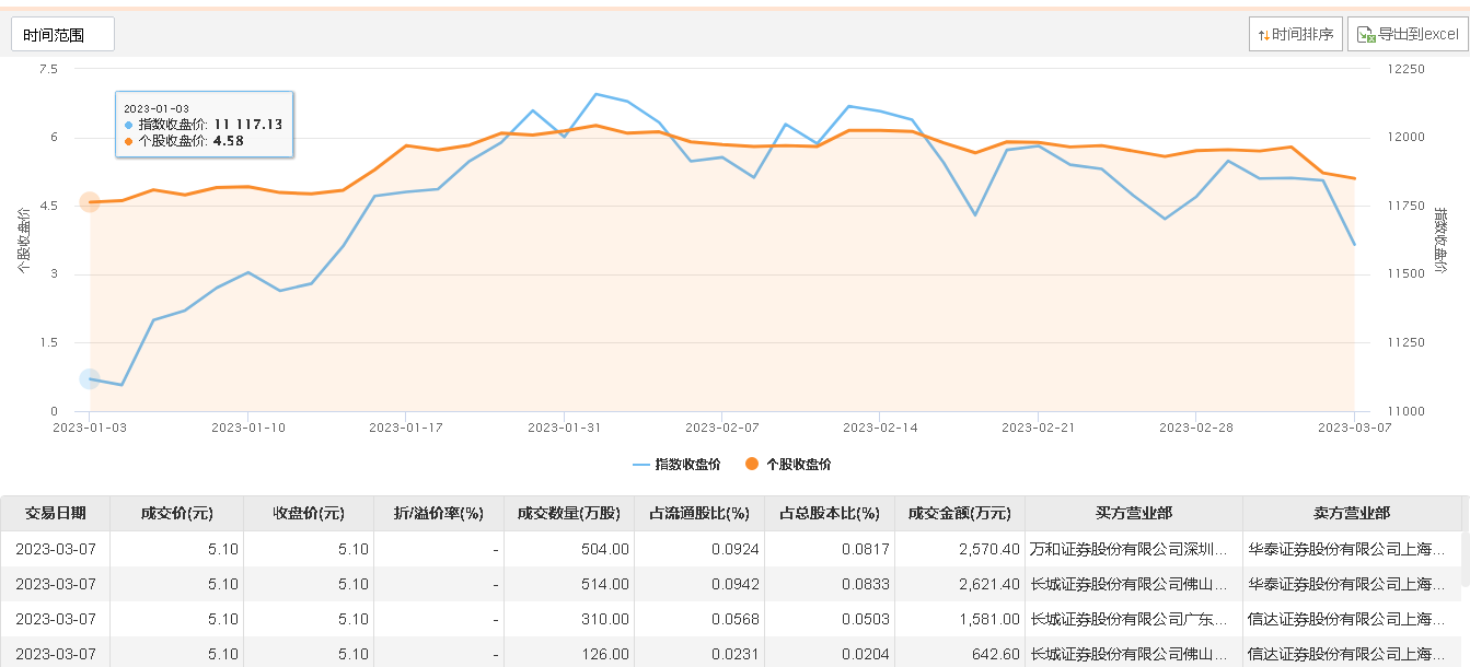 3月7日,中公教育大宗交易成交1454万股,成交额7415.4万元,占当日总成交额的8.83%,成交价5.1元,较市场收盘价5.1元持平。