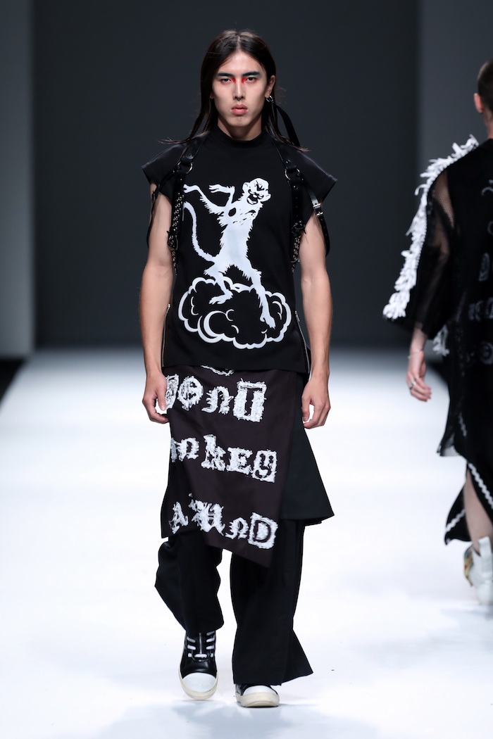 Just In Case 2017SS系列灵感来自于《西游记》的大闹天宫后跑到五指山写下「到此一游」,简单四个字描绘出孙悟空反叛又嚣张的灵魂,但这场秀所围绕的主题又不止孙悟空,而是取经的四师徒。