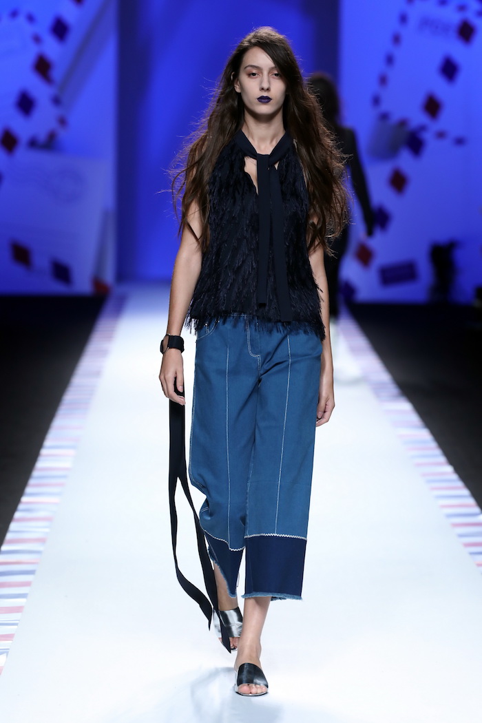 REINEREN的秀场上,观众举起手机拍照或是录小视频的举动几乎没有中断过,尤其是女生们。以洁白的上衣搭配开衩的金属百褶半裙为例,这是大多数女生都能够驾驭的风格,随后出场的模特儿中,也不乏白色T恤搭配及膝裙、白衬衫搭配黑裤子等,这种女生衣橱里一定会有的长青款被REINEREN加入了一点别致的小细节,本着“这一套我也能穿”的心态,又响起了一片按快门的声音。