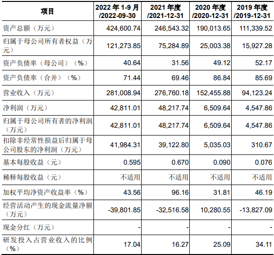 公司是面向全球的机器视觉和移动机器人产品及解决方案提供商。公司于2019年、2020年、2021年及2022年前9月分别实现营业收入9.41亿元、15.25亿元、27.68亿元及28.1亿元;分别实现归母净利润4547.86万元、6509.64万元、4.82亿元及4.28亿元。