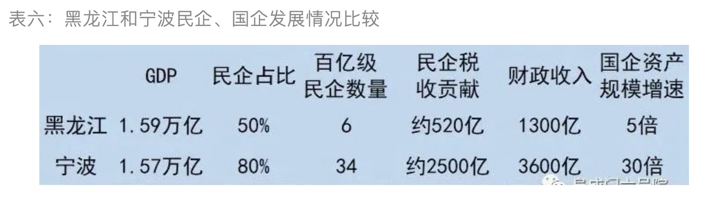 这种情况下,黑龙江省财政对国企支援非常有限,中央补贴与本地财政加起来也不过每年70亿左右,所以,僵尸企业等问题迟迟不能解决;“财大气粗”的宁波市政府则可以屡屡拿出大手笔,支援国企发展,仅2019年度成立的“国企发展专项基金”就达500亿,这绝对是黑龙江无法相比的。由此导致,从2003年至今,黑龙江国有企业资产总额仅增长了5倍左右,而宁波从888亿增长到2.68万亿,增幅达到了30多倍;当年宁波国企资产总额仅是黑龙江的四分之一,如今已经是其1.6倍。