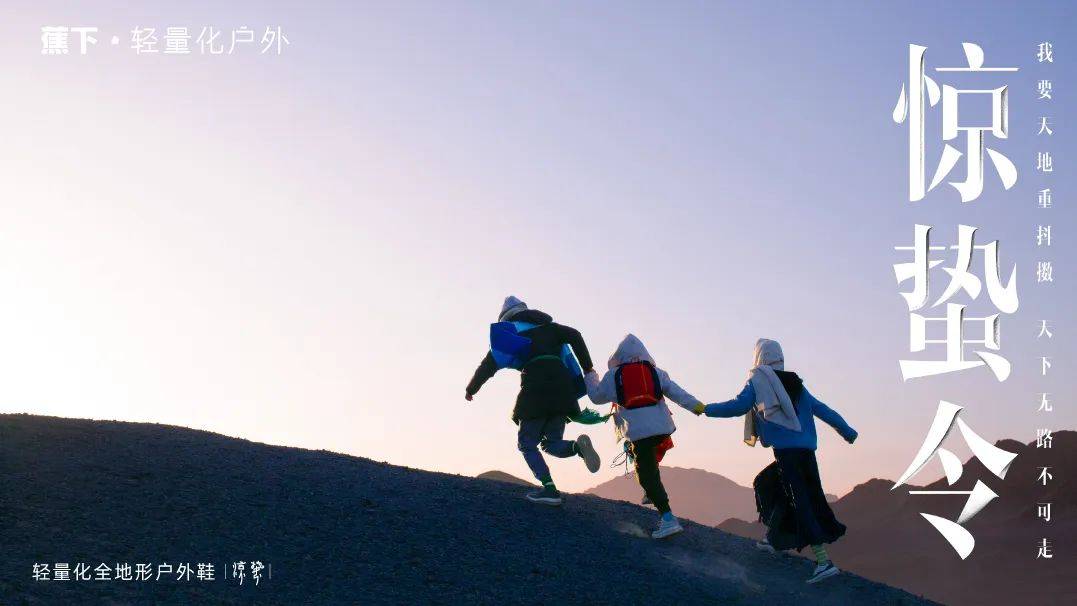 以惊蛰为引,蕉下通过「惊蛰令」发布了一款轻量化全地形户外鞋,并以此传达出“天下无路不可走”的全地形精神。