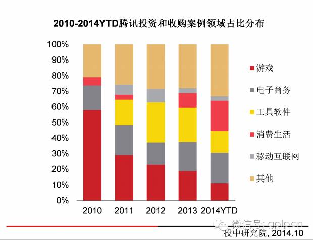 2010年之后,伴着移动社交、电商和O2O开始迅速发展,在微信的刺激下,腾讯体量激增,同时面对移动互联网的创业大潮,腾讯于2011年设立产业共赢生态基金,对一些优质企业进行扶持和收购,注重打造生态链。