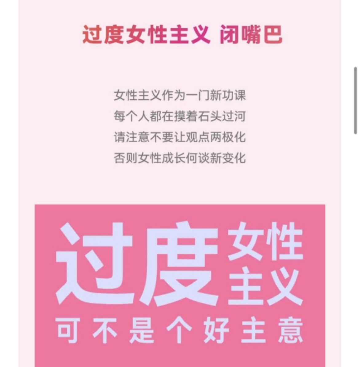 文章正文设立了“过度女性主义 闭嘴巴”“性别分子 闭嘴巴”等多个小标题,配有带有“过度女性主义可不是个好主意”“没事搞对立,真是没纪律”等内容的大图。