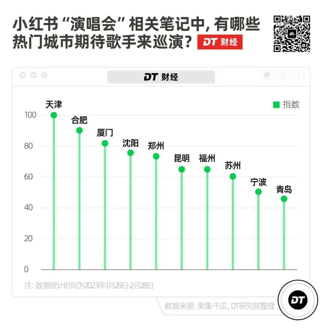 小红书“演唱会”相关笔记中,除了一线城市北上广深,二线城市的呼声最高,基本上以每个省份的省会城市和大型城市为主,比如天津、合肥、厦门。