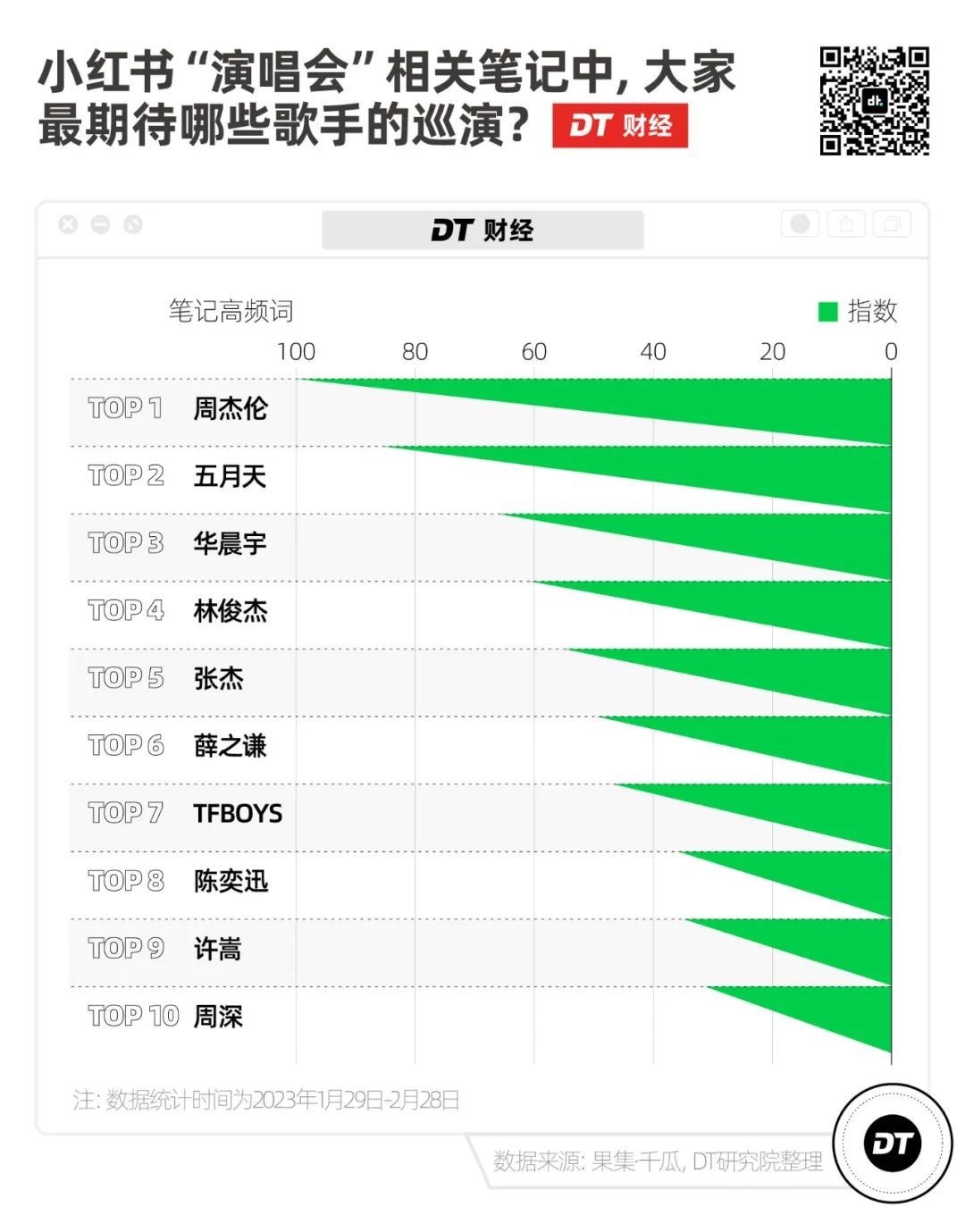 DT财经从中整理了10位被提到次数最多的热门歌手,他们大致可以分成两类:
