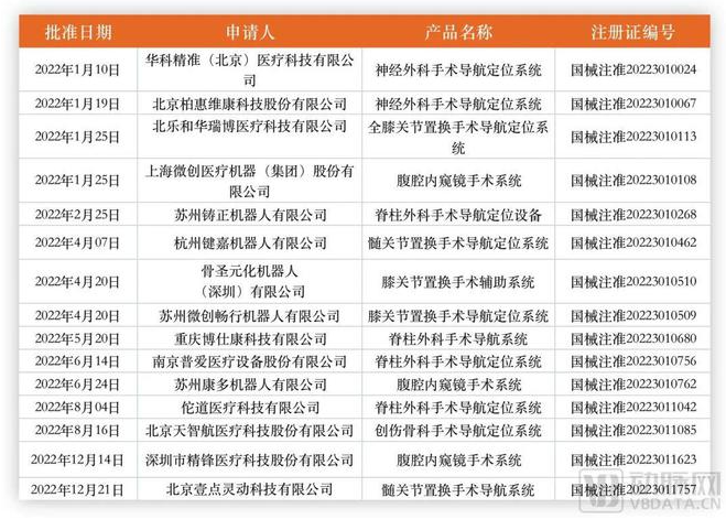 骨科手术机器人是中国手术机器人领域中入局企业较多的细分领域,在2022年就有10款产品获批,这也意味着它是竞争最激烈的领域。