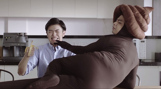 过去果蔬饮料的广告往往都是清爽画风,代言人也都是明朗元气的形象,但李奥贝纳却给这款新饮料推出了一支画风清奇的饮料广告。在广告中,主角是一个看起来脏兮兮的Mr.污。肥胖的Mr.污头顶着便便,不但在便秘的白领男子身后死缠烂打,时不时还身体调戏他一番,有一种诡异的CP感。