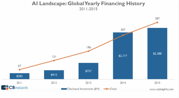 2016年上半年,近15亿美元的资本流向了200家人工智能公司。