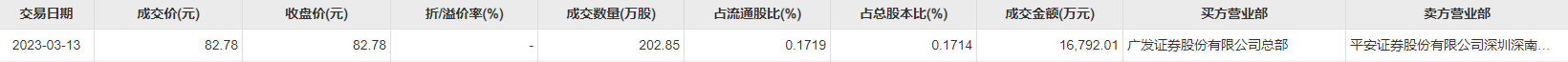 韦尔股份3月13日大宗交易成交202.85万股,成交额1.68亿元,占当日总成交额的23.39%,成交价82.78元,较市场收盘价82.78元持平。