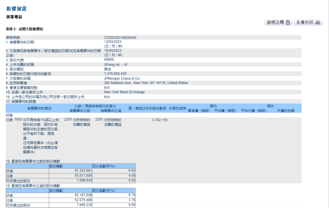 小鹏汽车:3月13日获摩根大通增持374.21万股,其持股比例增加到6.76%