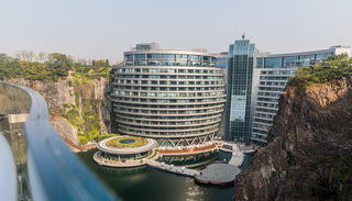 这座酒店位于上海市风景区佘山脚下,由于所处环境复杂,深坑酒店在建造过程中就拿下38项技术专利,封顶时引来400余位国内外建筑专家观摩。酒店共有客房300余间,包含水下景观客房、瀑布景观客房、空中花园等设施。