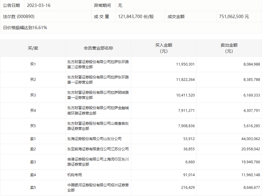 3月16日,法尔胜今日跌3.54%,龙虎榜数据显示,上榜营业部席位全天成交1.88亿元,占当日总成交金额比例为25.1%。其中,买入金额为5040.91万元,卖出金额为1.38亿元,合计净卖出8767.28万元。
