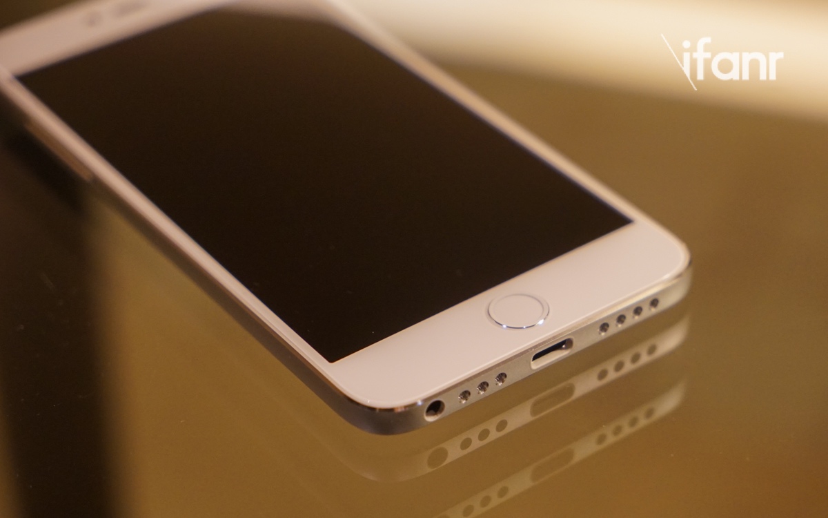 除了目前采用超声波指纹的设备,像 iPhone 和目前一系列 Android 机的指纹识别键周围都会有一圈金属圈,作用是为了感测到手指,激活指纹识别电路。对比 iPhone 的圆形 Home 键,锤子 M1 / M1L 的前置指纹识别的金属圈更宽,面积更大,同时金属圈对比正面玻璃略微有点凸起,而 iPhone 指纹识别器上的金属圈是完全与屏幕齐平的。