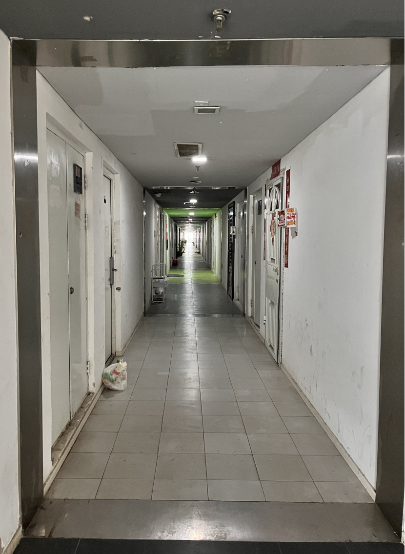 首先,是楼道的公共区域,一层多达32户,第一次进这里的人,会产生一种“梦回大学宿舍”的感觉。但它又比宿舍隔音更差,来往行人走路说话都能听得一清二楚。