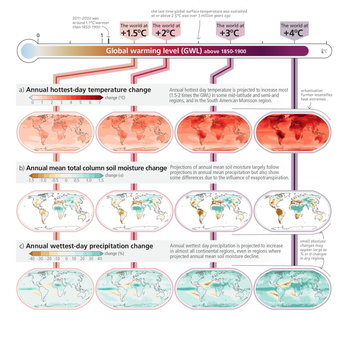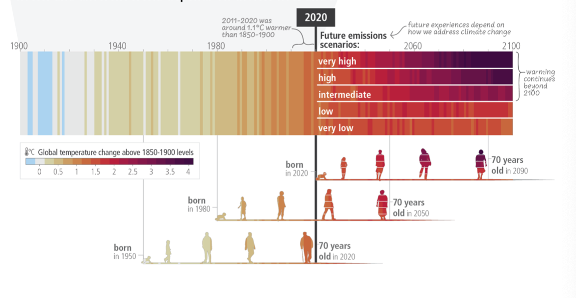 IPCC表示,由人类造成的气候变化所导致的不利影响将继续加剧,目前观察到的广泛和大量的影响以及相关损失都归因于气候变化,今世和后代在多大程度上会经历一个更热和不同的世界,取决于现在和近期的选择。