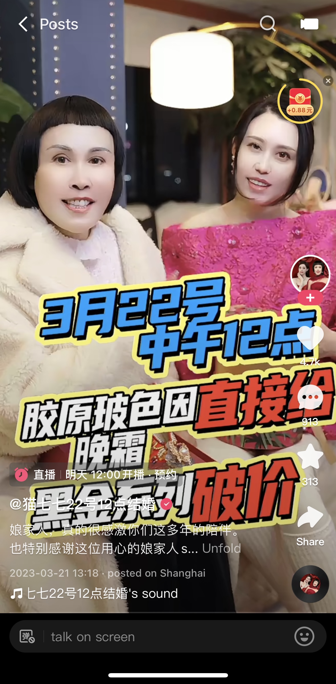 黛莱皙的创始人孙书梅就在快手上通过“猫七七”账号讲述自己与其小17岁丈夫的感情故事。围绕“猫七七”,孙书梅又发展了家人做“猫七七姑娘”、“猫七七大表哥”等助播账号。近期猫七七姑娘宣布结婚,以邀请全网“娘家人”粉丝的名义要为黛莱皙多款产品做破价直播。