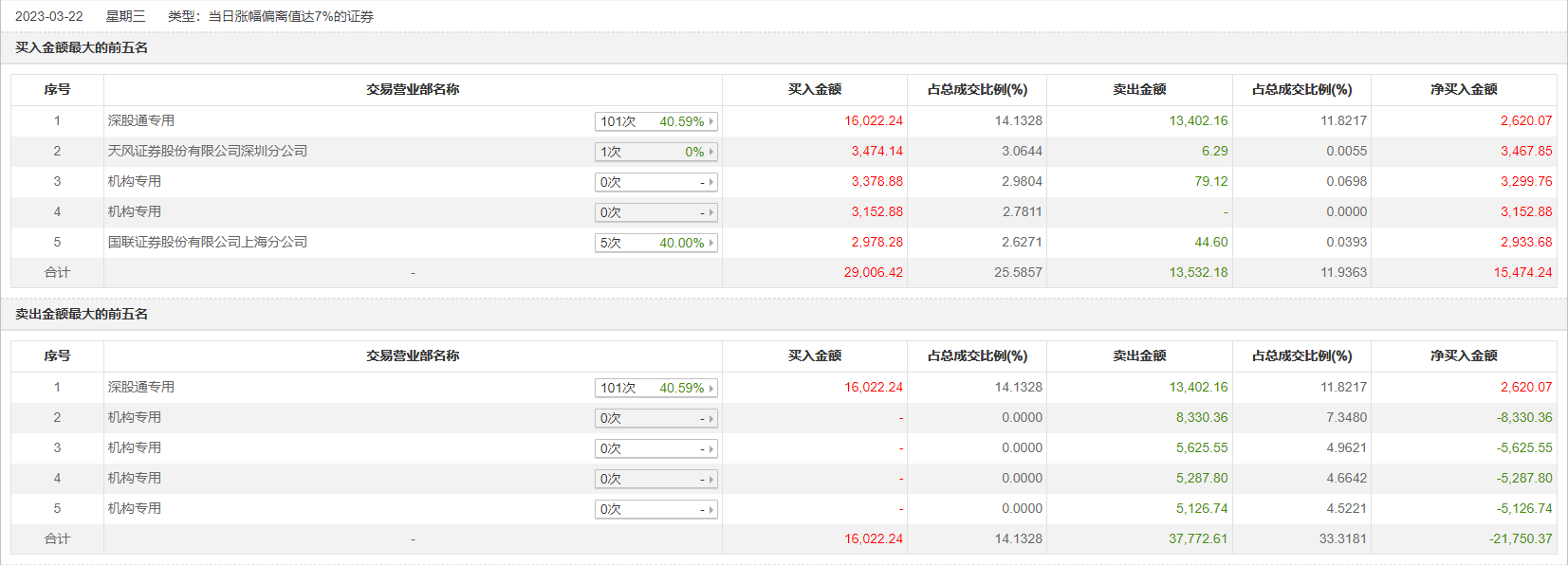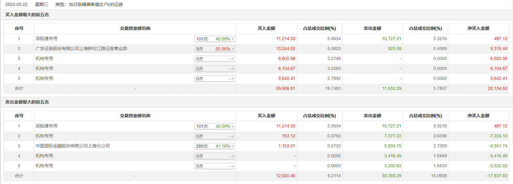 3月22日,PCB板块集体大涨,沪电股份、鹏鼎控股携手涨停,三机构买入沪电股份1.83亿元,三机构卖出1.4亿元,深股通买入1.12亿元并卖出1.07亿元;两机构买入鹏鼎控股6531万元,四机构卖出2.44亿元,深股通买入1.6亿元并卖出1.34亿元。